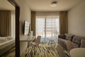 Die Apartements verfügen über einen Flat-Screen-Fernseher, Dusche oder Badewanne/WC, Haartrockner und einen Balkon sowie Küche (Mikrowelle, Kühlschrank, Wasserkocher). Die Appartements bestehen aus einem Schlafraum mit einem Doppelbett sowie einem Wohnschlafraum mit einem Doppelschlafsofa. Die durchschnittliche Zimmergröße beträgt ca. 33 m².
