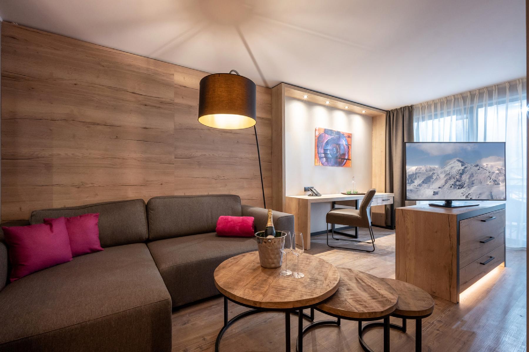 Die modernen und komfortablen Zimmer verfügen über einen Flat-Screen-TV, Telefon, Dusche, separates WC, Kosmetikspiegel, Nespresso Kaffeemaschine und Balkon oder Terrasse. Die Zimmer bestehen aus einem Schlafraum mit einem Boxspringbett, einem Einzelschlafsofa und einem Klappbett. Die durchschnittliche Zimmergröße beträgt ca. 30 m².