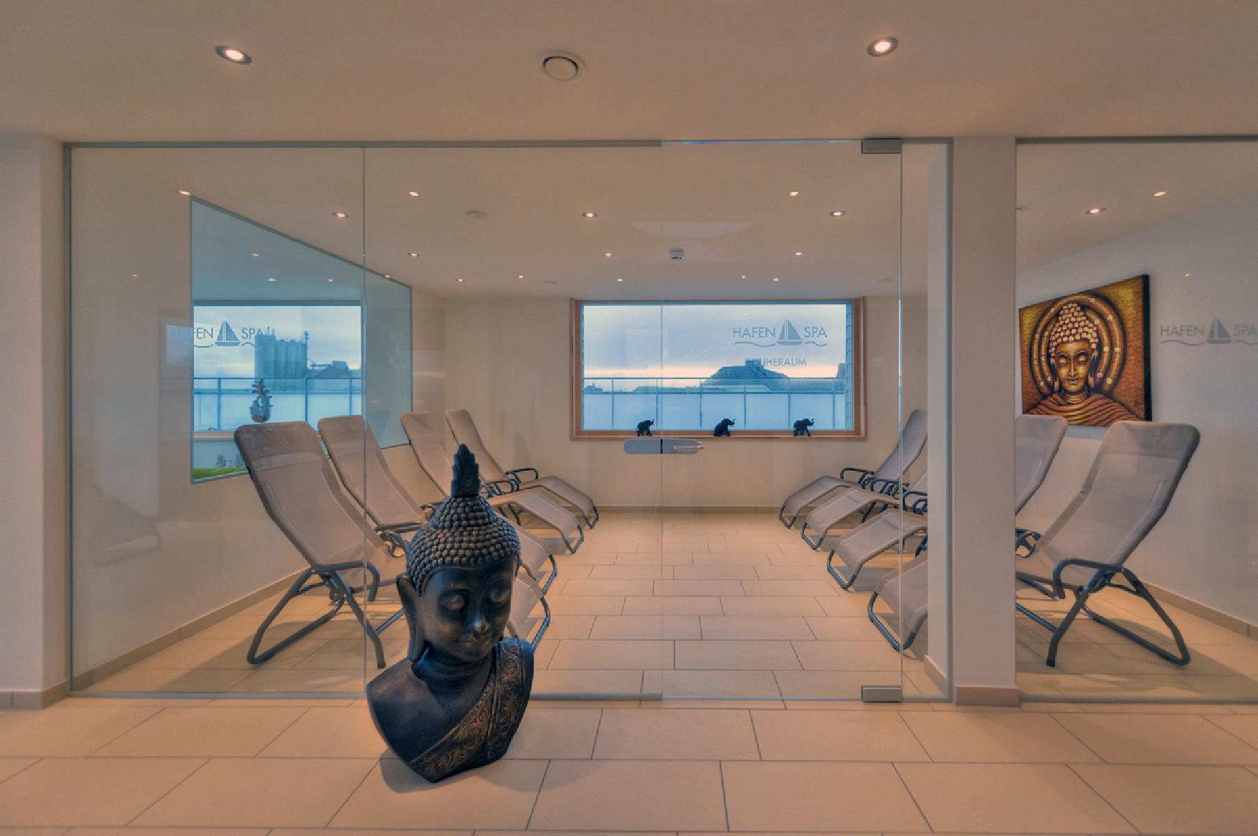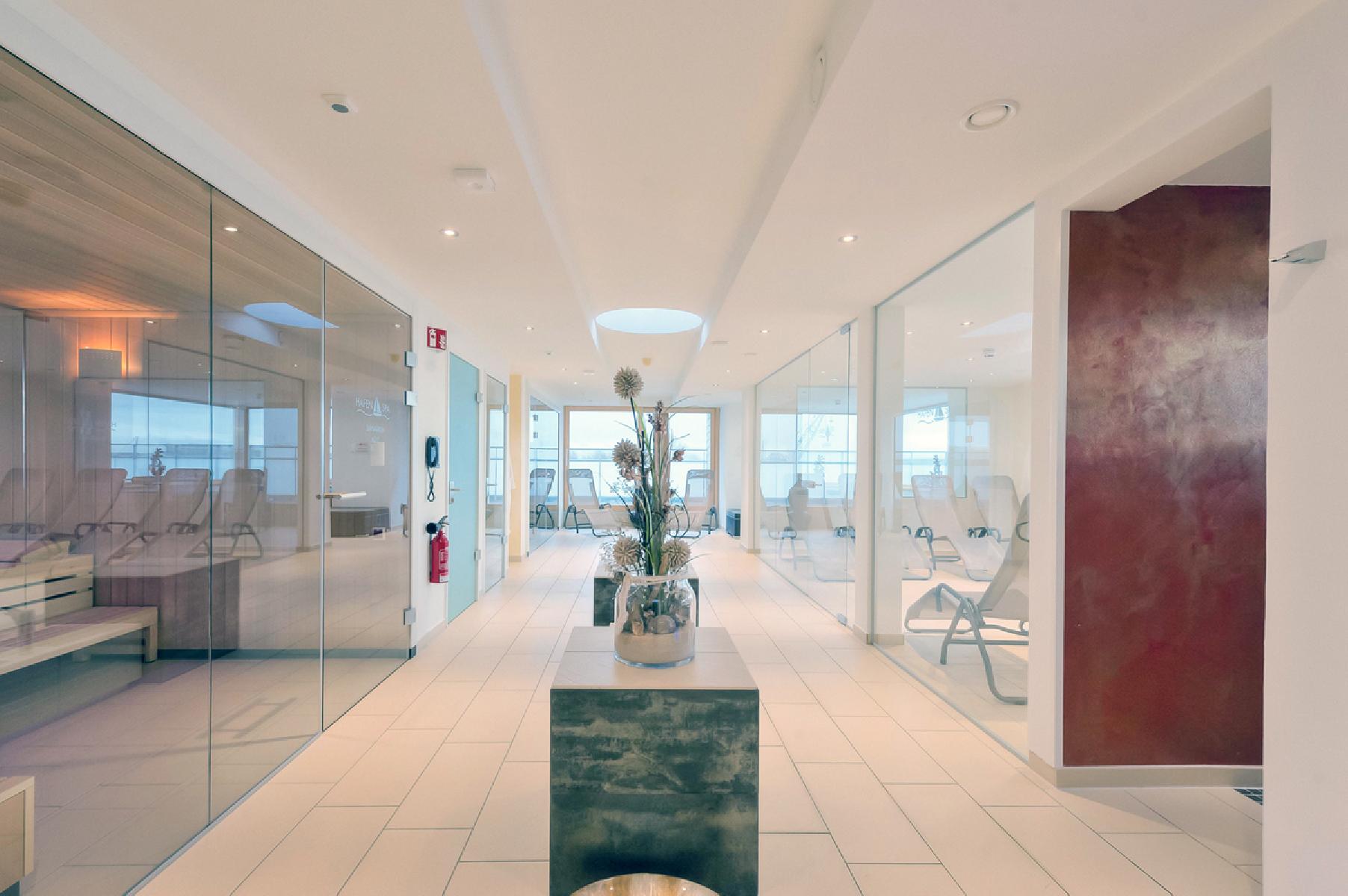 - Nutzung des ca. 100 m² großen Wellnessbereichs "HafenSpa" von 14:00 - 21:00 Uhr mit folgenden Einrichtungen:
