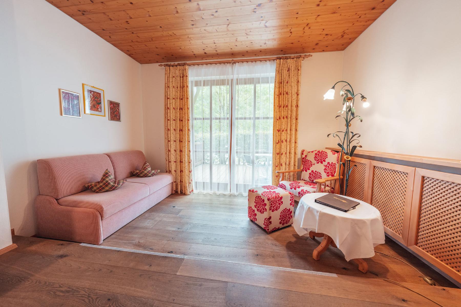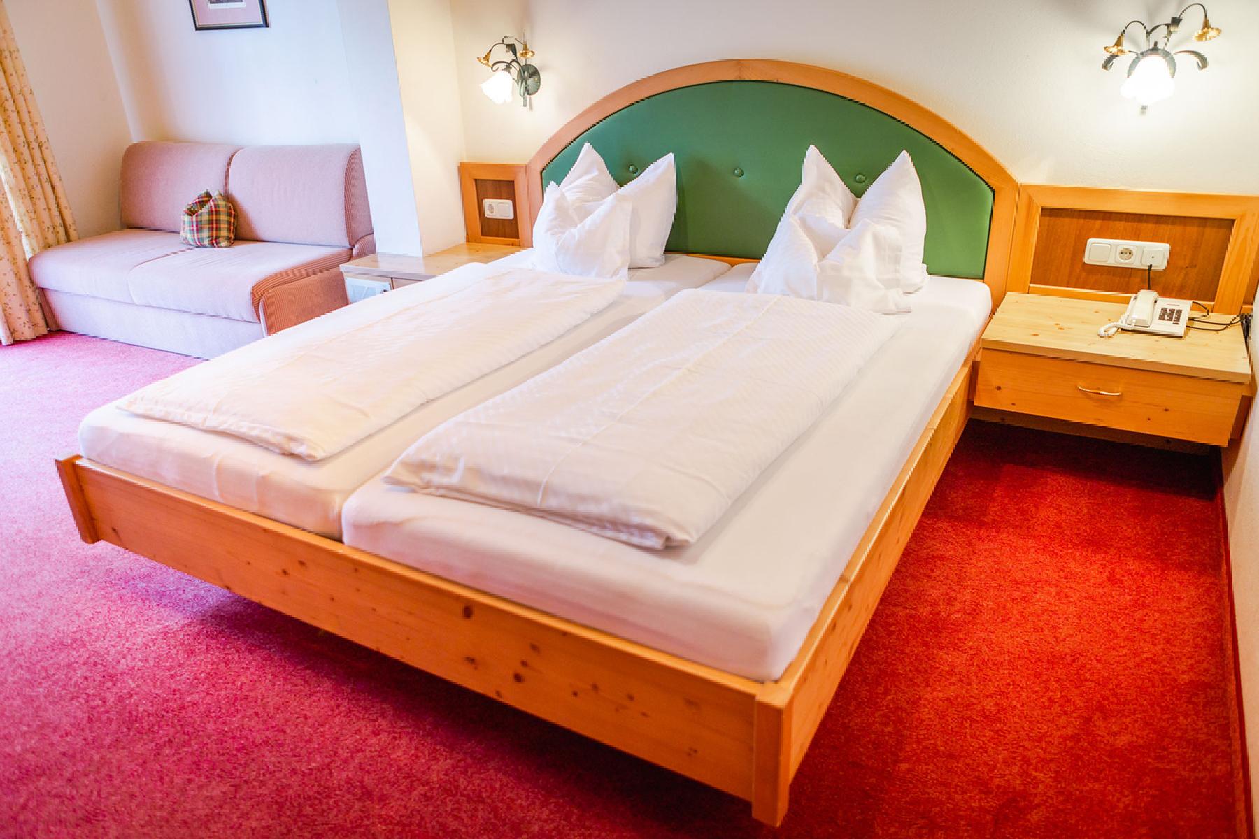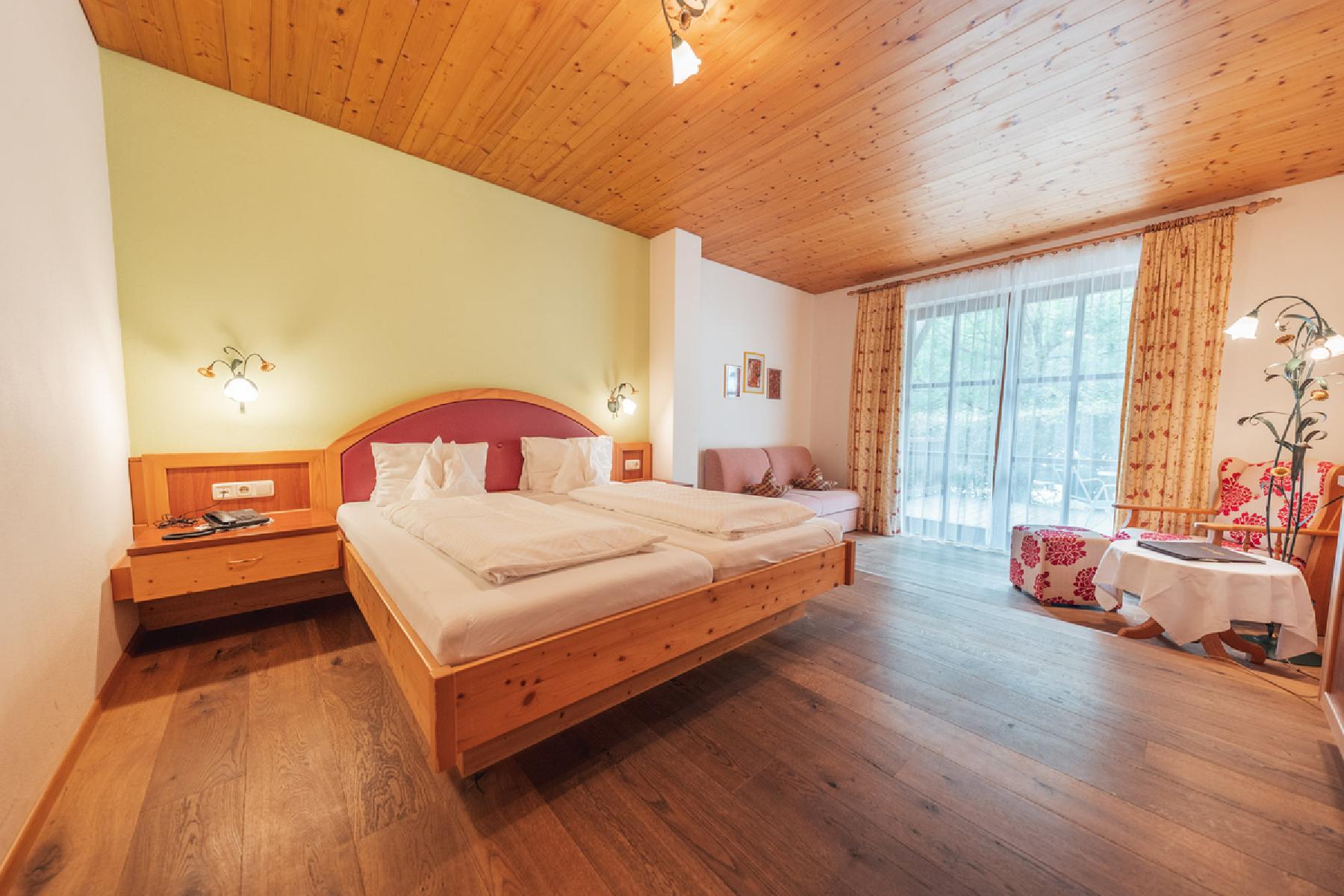 Die Familienzimmer "Almrausch" verfügen über Kabel-TV; Telefon, Dusche oder Badewanne, WC, Kosmetikspiegel, Föhn und haben einen Balkon. Die Zimmer bestehen aus einem Schlafraum und haben ein Doppelbett und ein Doppelschlafsofa. Die durchschnittliche Zimmergröße beträgt ca. 30 m².