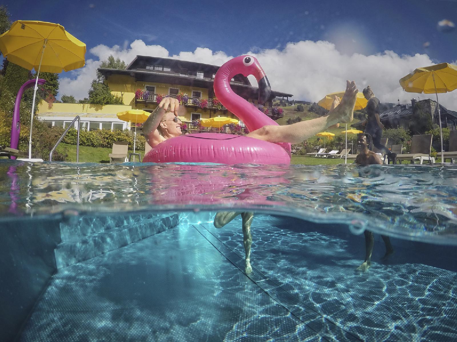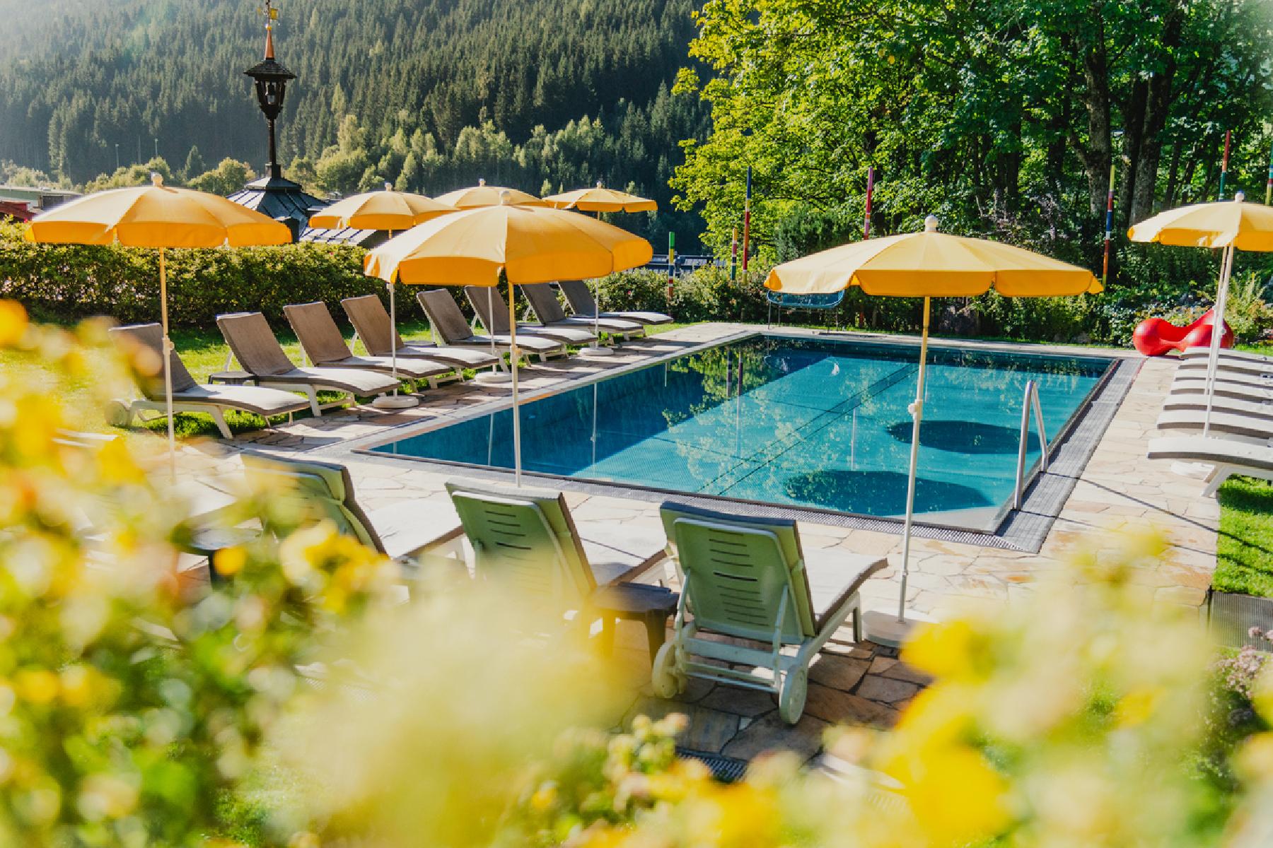 - Beheizter Außenpool, umgeben von Liegen und Sonnenschirmen von 07:30 - 20:00 Uhr geöffnet