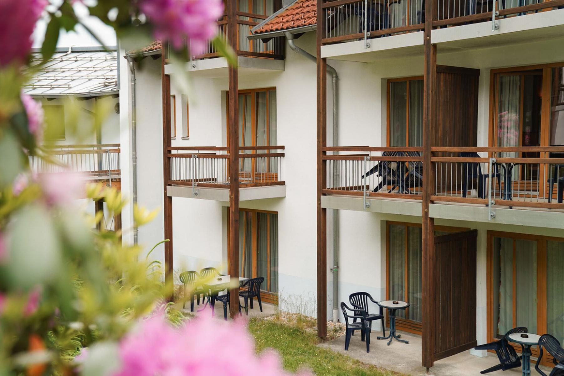 Die Zimmer verfügen über einen Sat-TV, Dusche/WC, Haartrockner und Balkon oder Terrasse. Die Zimmer bestehen aus einem Schlafraum mit einem Doppelbett und einer zusätzliche Schlafmöglichkeit. Die durchschnittliche Zimmergröße beträgt ca. 18 - 23 m².