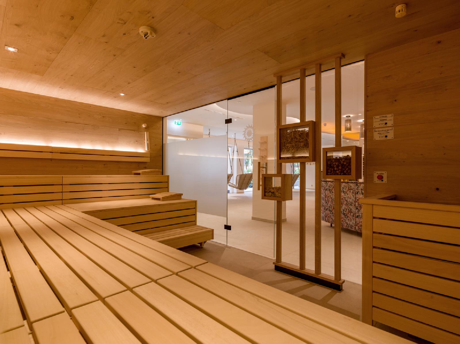 - Tägliche Nutzung des Wellnessbereichs mit folgenden Einrichtungen (Öffnungszeiten lt. Aushang vor Ort, im Sommer sind immer nur je 2 Saunen/Kabinen im Betrieb, bei Schlechtwetter ist der gesamte Bereich in Betrieb):