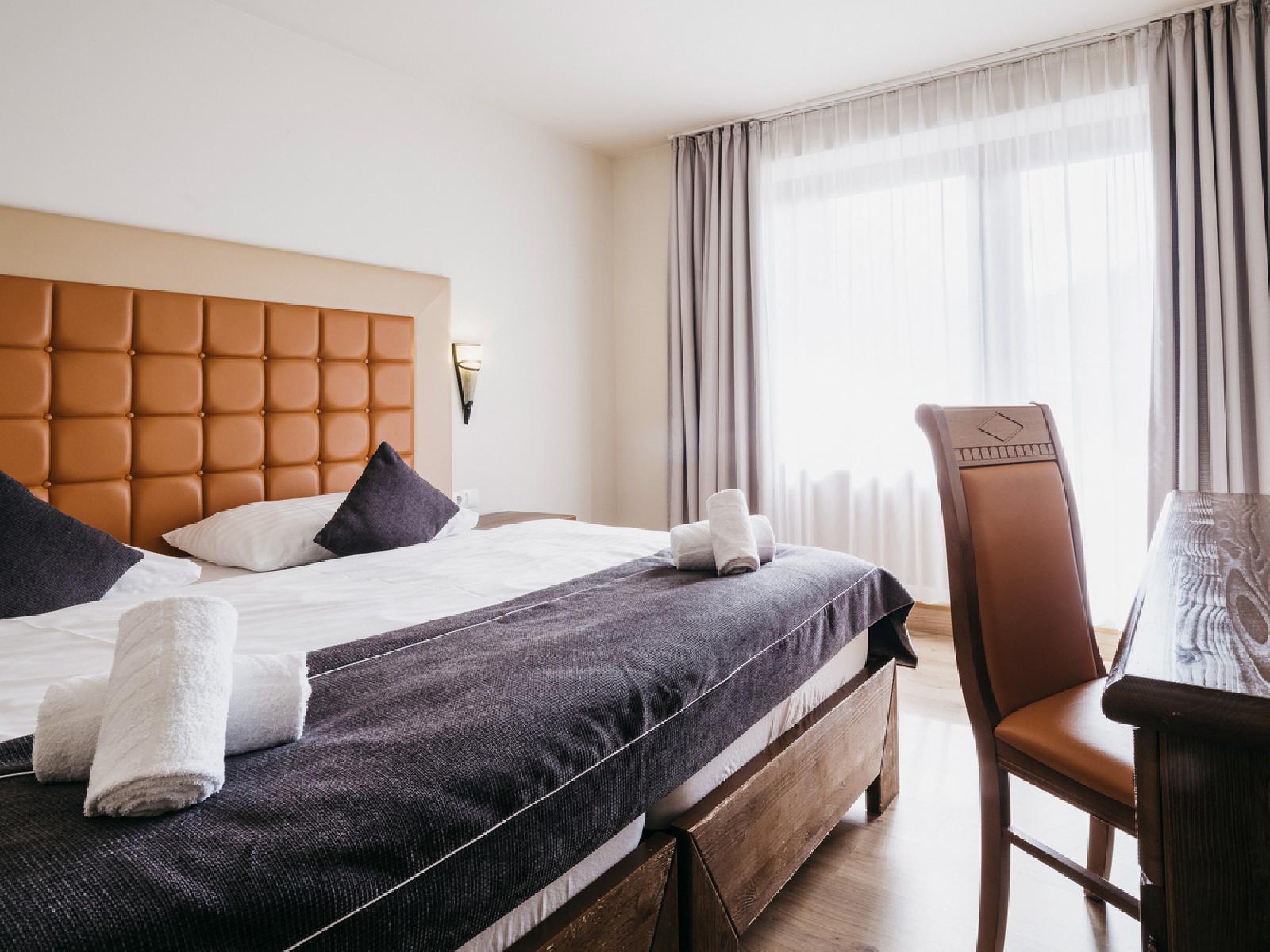 Die modernen und hellen Zimmer Kaprun verfügen über TV, Schreibtisch, Telefon, Safe, Dusche oder Badewanne, WC und Haartrockner und haben teilweise einen Balkon. Die Zimmer bestehen aus einem Schlafraum mit einem Doppelbett. Die durchschnittliche Zimmergröße beträgt zwischen ca. 19 und 25 m².