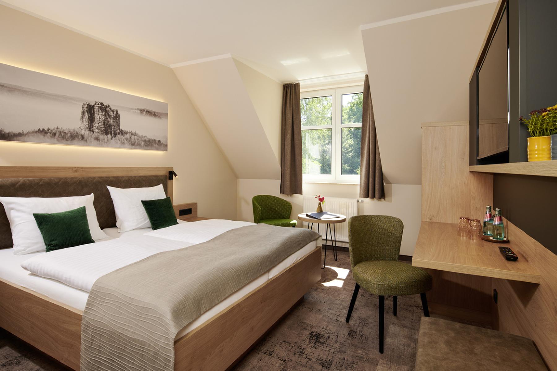 Das freundliche, 2023 teilweise renovierte Hotel bietet Ihnen neben den insgesamt 54 Wohneinheiten eine Rezeption, eine Terrasse und eine E-Auto Ladestation sowie den schönen Wellnessbereich "WellRelax" mit finnischer Sauna. Für Ihr leibliches Wohl stehen Ihnen ein Frühstücksraum "Sächsische Schweiz" und ein Restaurant "Seinerzeit"(01.11. - 31.03. Sonntag Ruhetag) zur Verfügung. Radfahrer können den hauseigenen, abschließbaren Fahrradabstellraum nutzen. Das Rauchen ist nur in ausgewiesenen Bereichen gestattet.