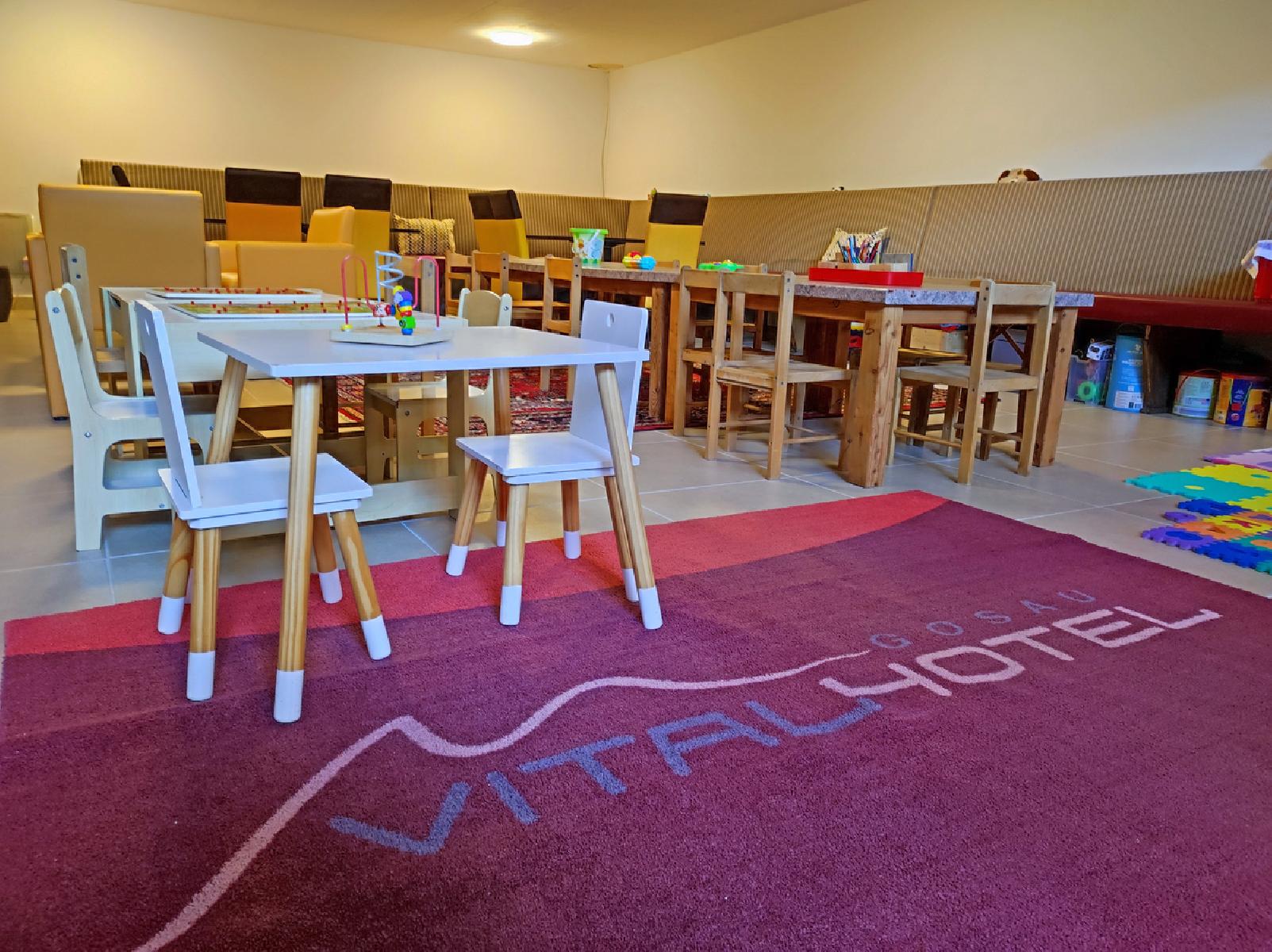 Das Hotel Vitalhotel Gosau verfügt über 90 Zimmer und bietet eine einladende Lobby mit Sitzecke, eine Rezeption, einen Aufenthaltsraum, einen Weinkeller, eine E-Bike-Ladestation, einen Badminton- und Basketballplatz sowie eine Tennishalle. Für das leibliche Wohl stehen ein Restaurant sowie das Stüberl „Zirbenstube“ zur Verfügung. Die Hotelbar „Ranch“ sowie eine öffentliche Bar in der Umgebung der Unterkunft bieten eine angenehme Atmosphäre, um nach einem erlebnisreichen Tag zu entspannen. Zudem ist ein Wintergarten vorhanden. Das Rauchen ist nur in ausgewiesenen Bereichen gestattet.